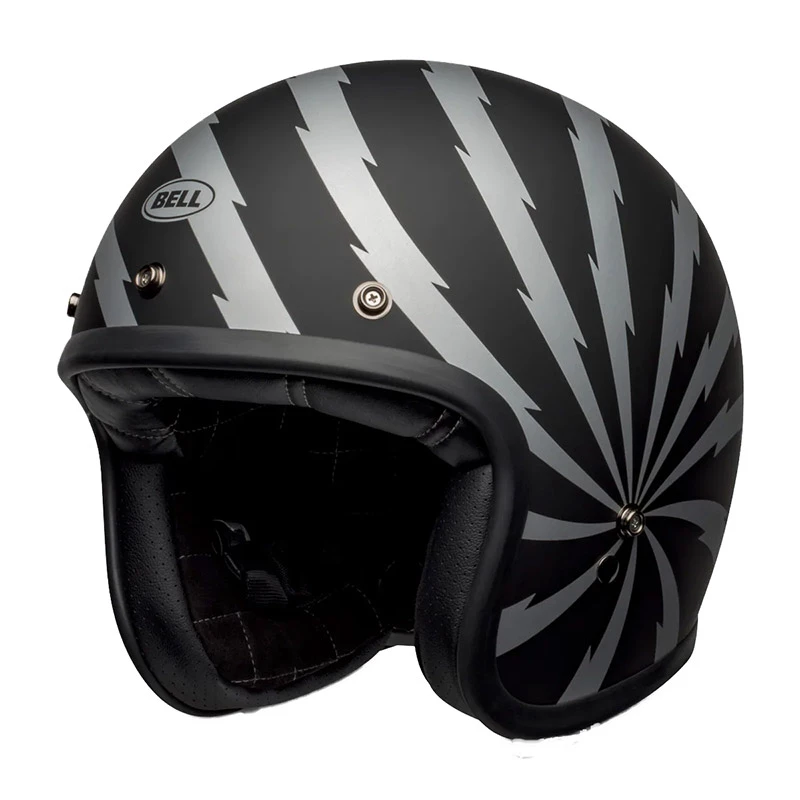 CORE SINCE ’54. The Custom 500 is the epitome of a classic 3/4 helmet. With 5 shell sizes the Custom 500 is sure to give the rider a personalized fit regardless of where you are on the size chart. The quilted, contrast-stitched, plush interior is wrapped in a fiberglass composite shell. Fit and finish are impeccable, and with dozens of shield and visor accessories available, the opportunity to personalize yours is endless. Experience the best in category helmets from those who helped invent truly protective helmets. Sold with the Bell leather bag included, the 520 black 3-button visor and the dark smoke shield. FEATURES: Low profile fiberglass composite shell. Shell available in 5 sizes. Antibacterial interior. Multi density EPS liner. Integrated 5 snap pattern for aftermarket shields and visors. Double D-Ring closure with padding. Weight of 1185 grams. Meets or exceed the following safety standards, ECE.