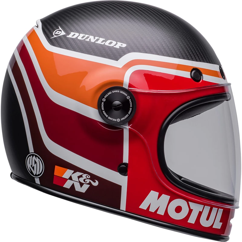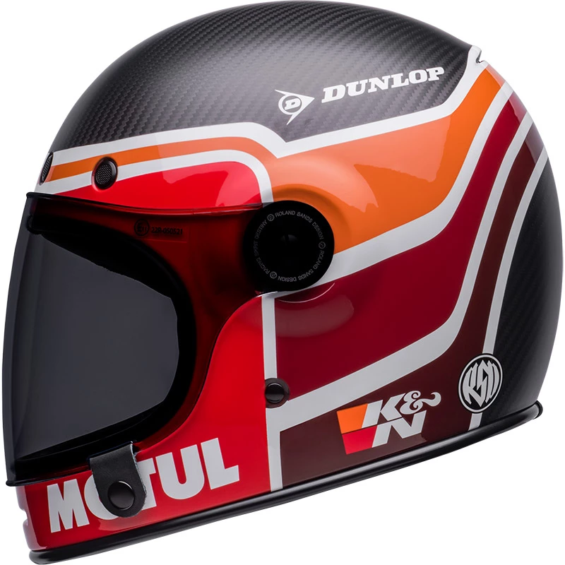 Inspired by the very first Bell Star helmet, the Bullitt is a modern take on the original. Featuring an exceptional fit and ultra-high quality details, the Bullitt is the perfect helmet for riders looking for a vintage look with full-face protection. RSD Bagger comes with additional flat dark smoke shield. Sold with clear visor and optional dark smoke visor. Brown interior (set liner and cheek pads). Carbon Matte comes with additional flat silver iridium shield.