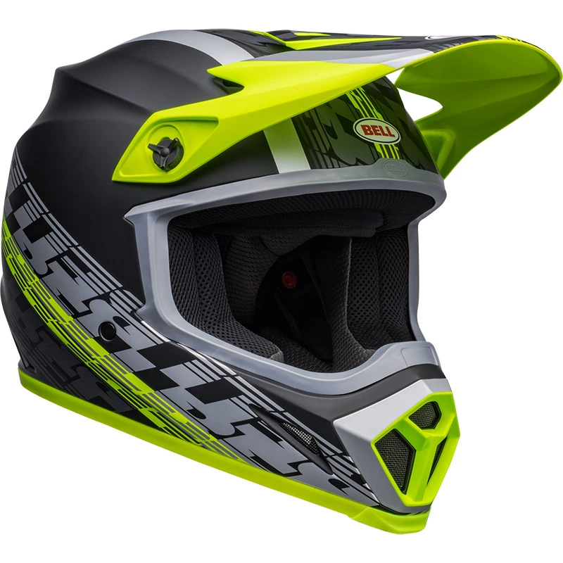 Off-road helmet cross Bell Mx 9 with MIPS system Multi-Directional Impact Protection system, which temporarily allows the head to slide independently from the helmet, reducing the damage to the cervical.