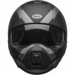A brutal combination of attitude, style, and functionality makes the Bell Broozer a true streetfighter. Dual-certified for both full-face and open-face riding, the removable chin bar and integrated drop-down shield means the Broozer is ready for anything. Combine this with the Bell fit you love and a lean fighting weight of 1350 grams, and you have yourself a ringer. FEATURES: Lightweight Polycarbonate/ABS shell. Anti-fog, anti-scratch UV-protected integrated drop down shield. Removable, washable liners. Dual density EPS. Eyewear compatible. Removable chin bar. Adjustable slider vents on shell and chin bar. Padded chin strap with quick release ratchet buckle. Clear and dark smoke visors included. ECE approved.